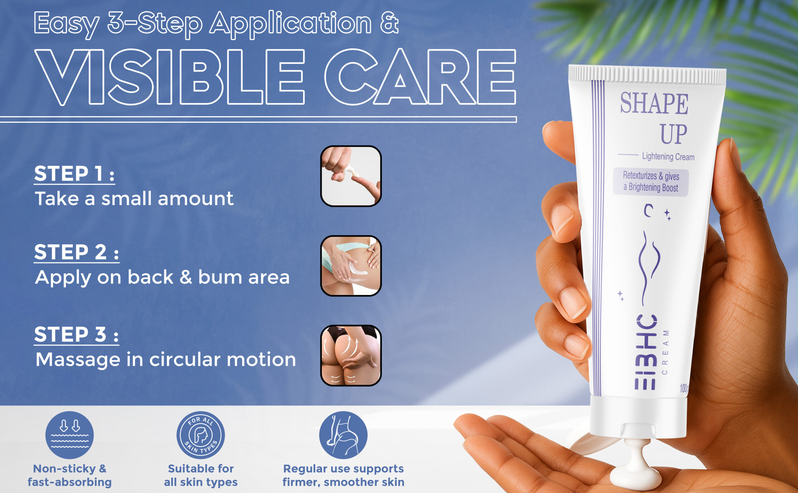 The lightweight, non-greasy texture absorbs quickly, making it ideal for daily massage. Regular use supports better skin texture, hydration, and a more contoured appearance of the back, hips, and bum area. Designed for women seeking a natural body care solution, this herbal cream is gentle on the skin and suitable for all skin types.