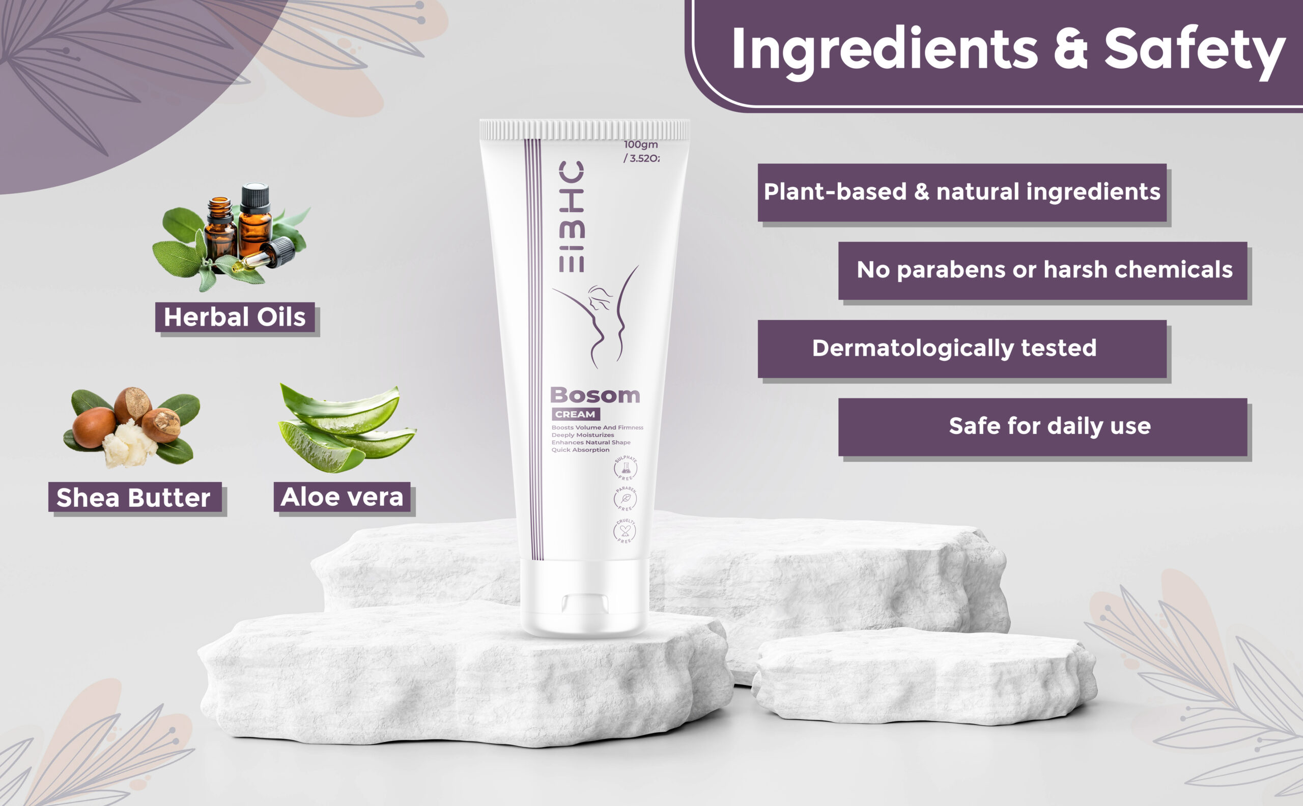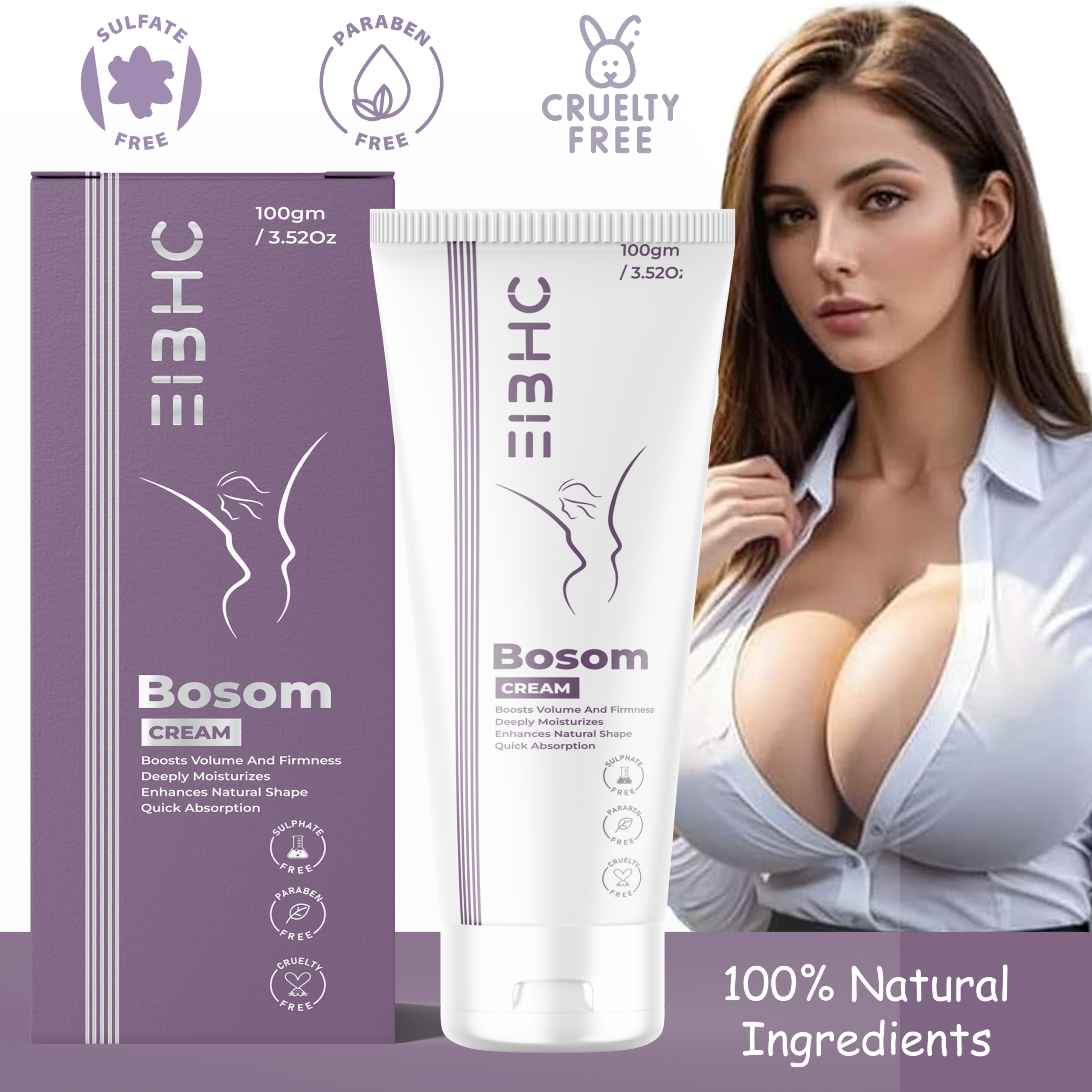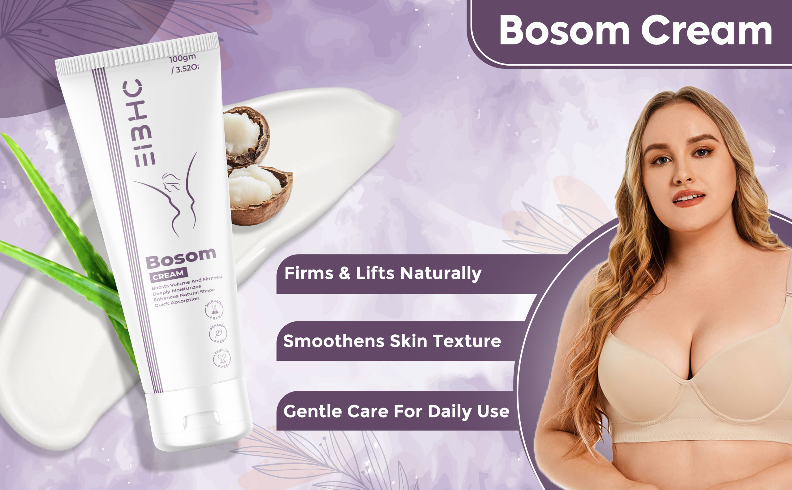 EIBHC Bosom Breast Cream 100 gm | Ayurvedic Herbal Bust Firming & Chest Skin Tightening Cream for Women
