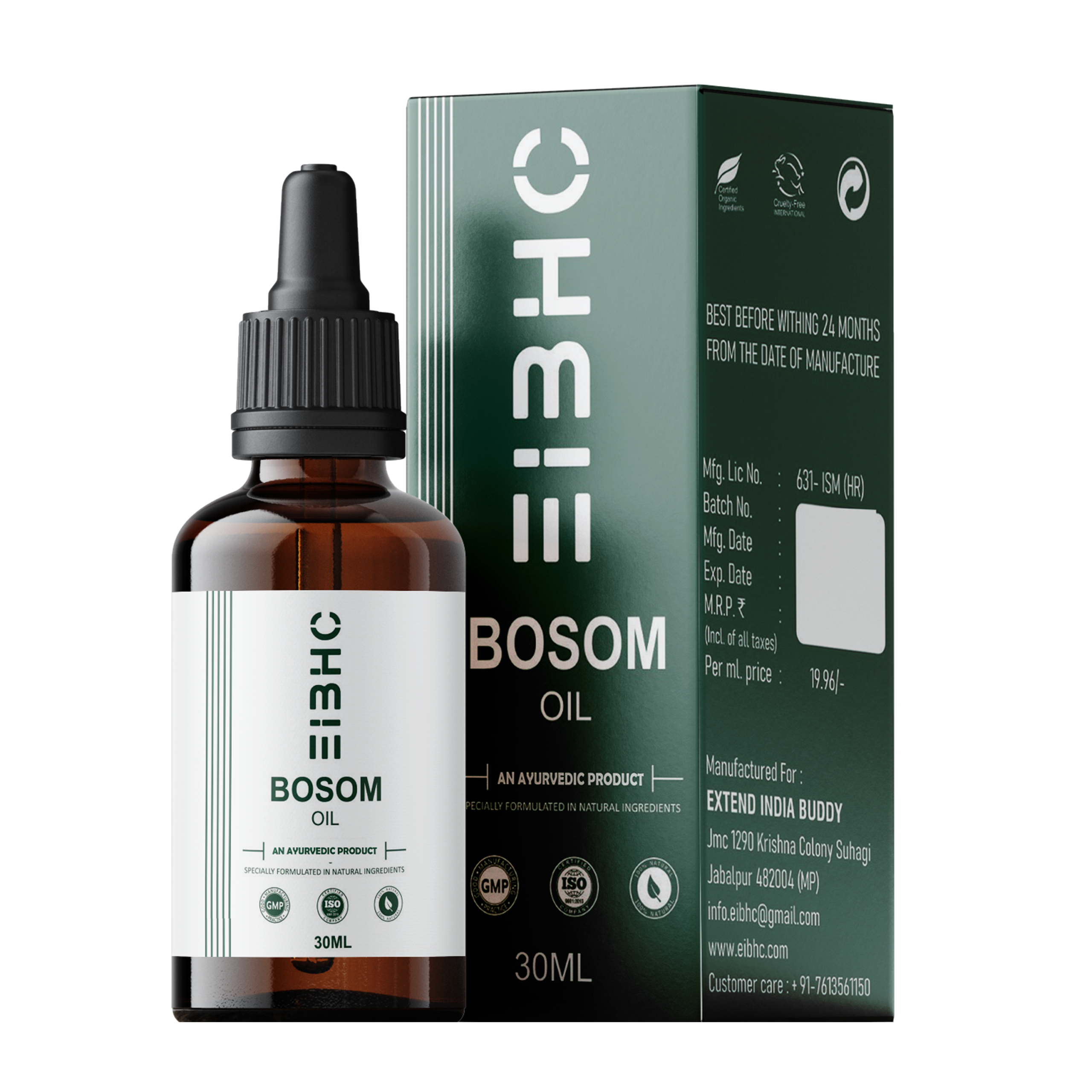 EIBHC Bosom Care Herbal Massage Oil is thoughtfully crafted using herbal ingredients designed to help nourish and moisturize delicate skin areas. The lightweight and non-greasy formula spreads smoothly and absorbs easily, making it suitable for regular massage use. With consistent application as part of a healthy skincare routine, it may support the appearance of skin firmness and hydration. The compact 30 ML bottle makes it convenient for home or travel use. For external use only. Perform a patch test before first use. Store in a cool and dry place away from direct sunlight. Individual results may vary.