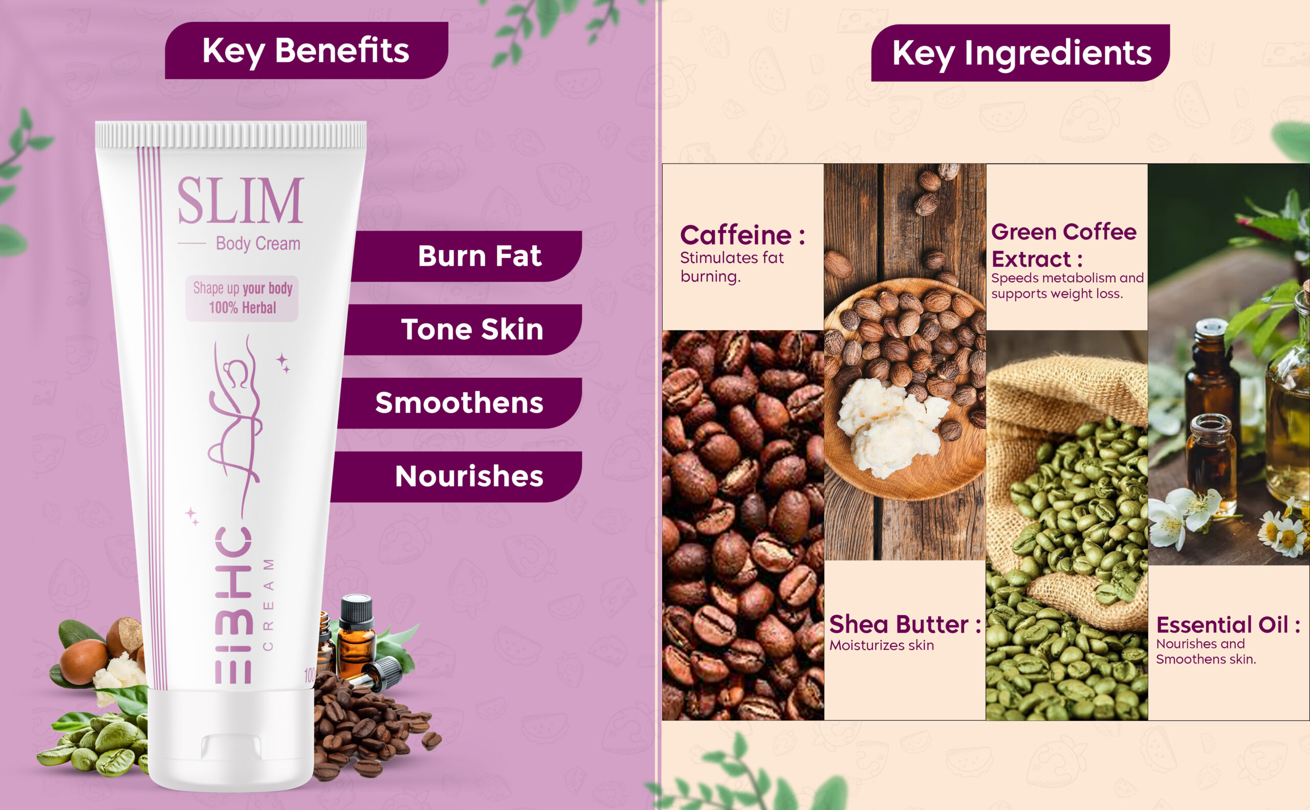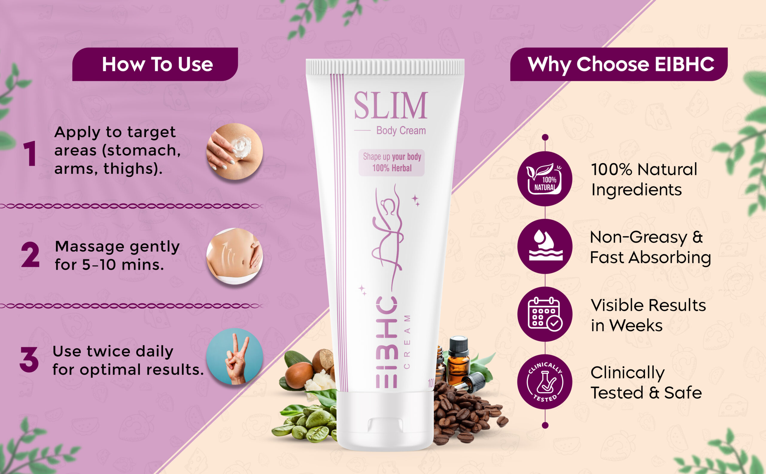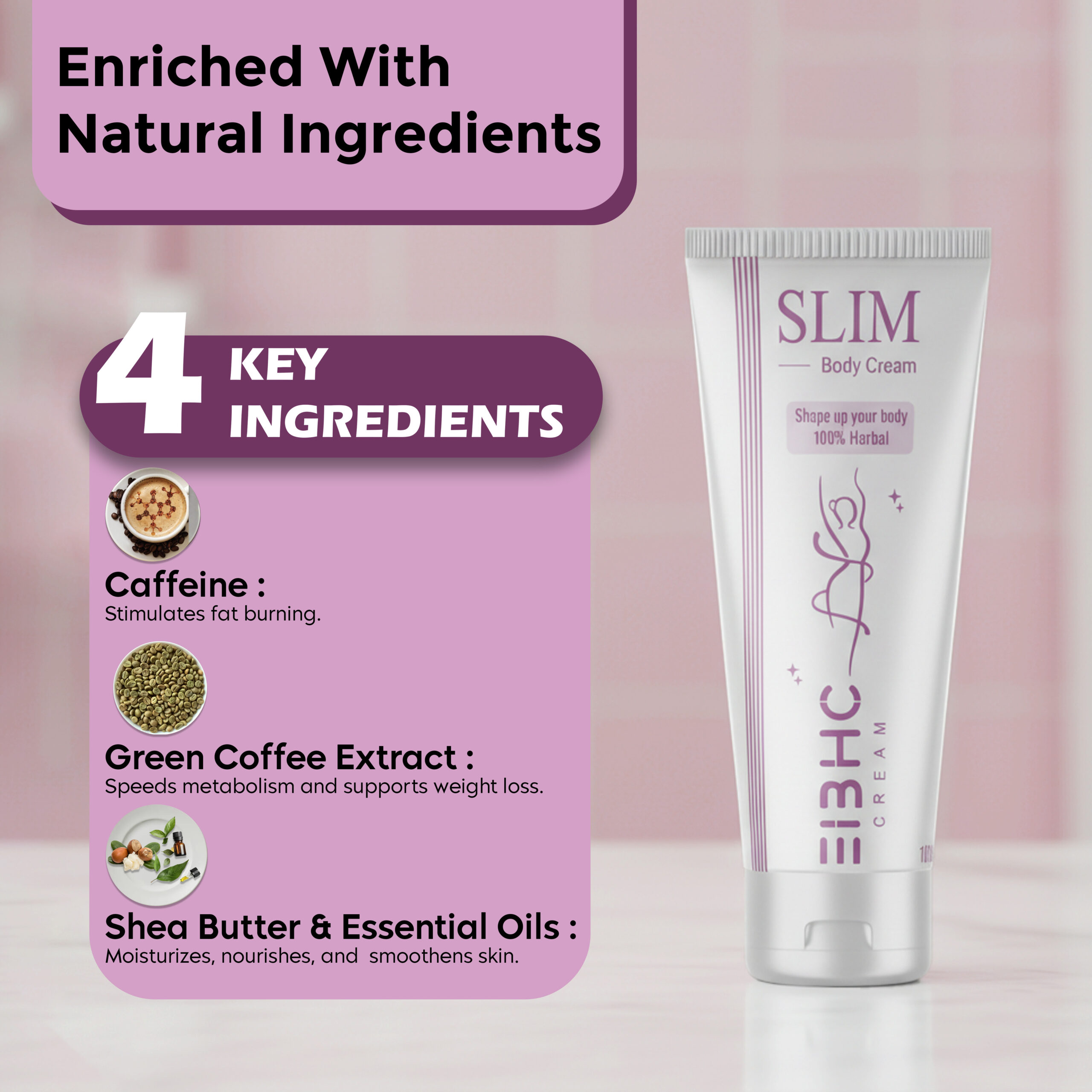 EIBHC is committed to creating herbal and ayurvedic personal care solutions that are safe, effective, and fully compliant with Amazon’s policies. Our Slim Weight Loss Cream provides herbal nourishment, skin toning, and firming benefits using only skin-friendly ingredients. With regular use, it helps maintain soft, smooth, hydrated, and well-toned skin, giving a naturally cared-for appearance without any harsh chemicals or unsafe additives.