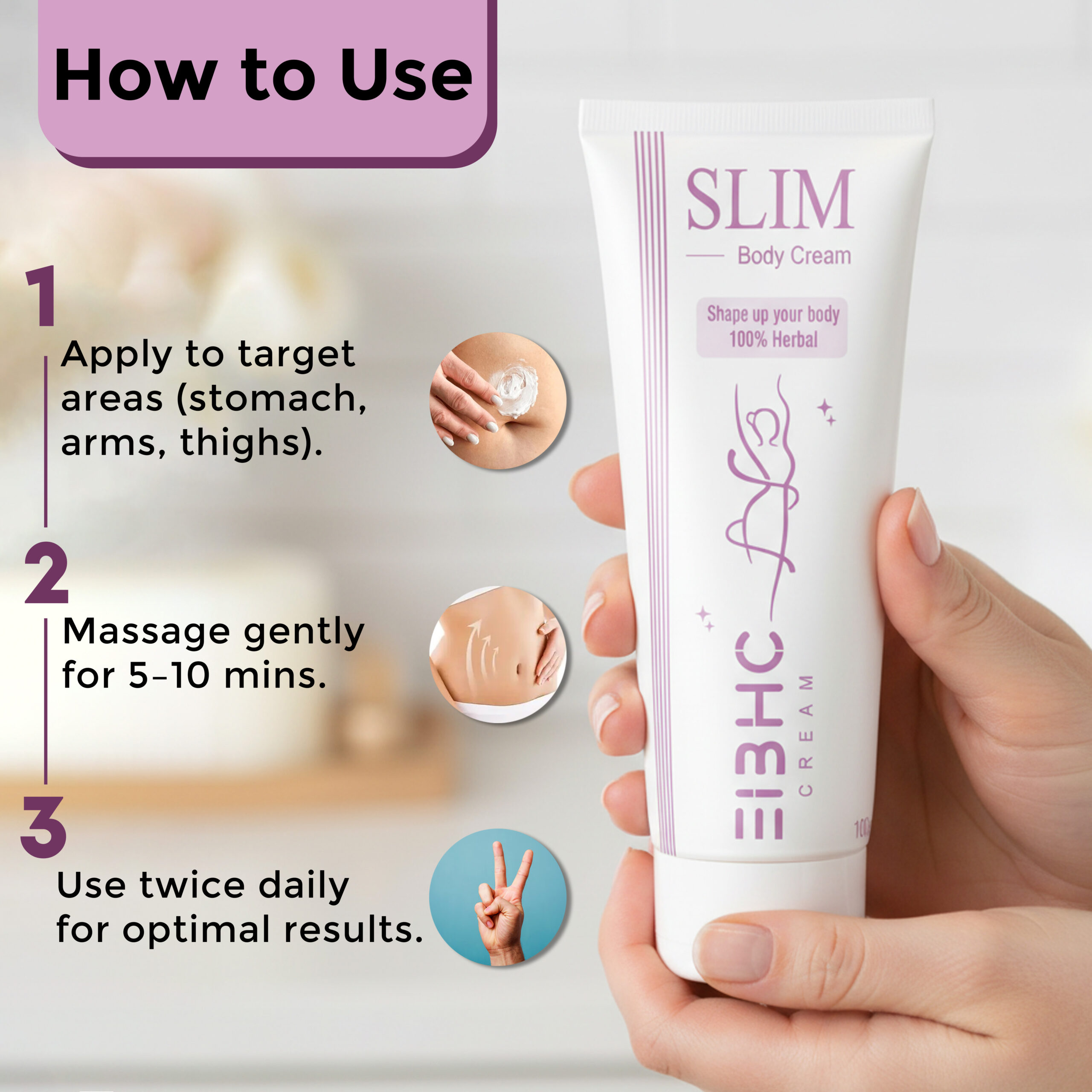 The lightweight, non-greasy formula absorbs quickly, making it ideal for daily massage. Regular application helps enhance the appearance of firm, smooth, and well-toned skin, while promoting overall skin comfort. This herbal body cream is formulated to provide a cosmetic solution for skin firmness and toning, without making any claims of weight reduction, fat loss, or slimming.